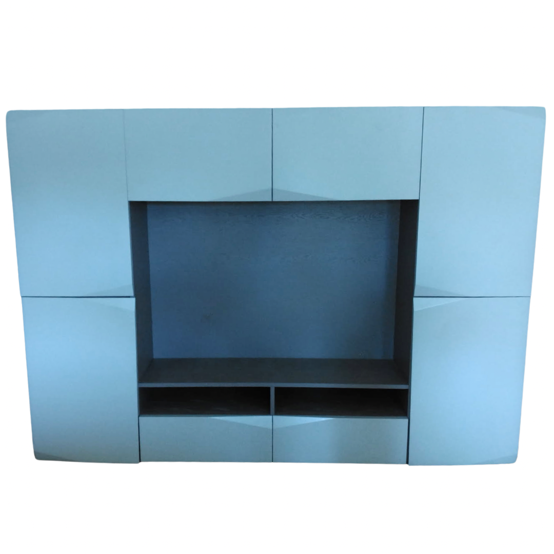8 portes, plusieurs étagères de rangement, parfait pour de la vaisselle, des livres et autres, grand espace centrale peut accueillir une télévision ou autre